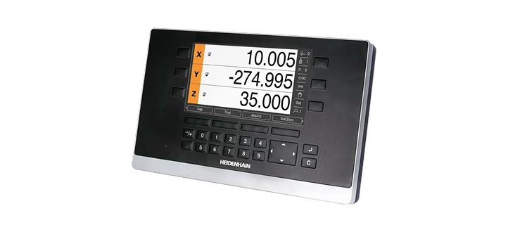 Designed for the fast and reliable positioning of manually-operated machine tools, this digital readout features a 7-inch touchscreen with an intuitive interface, supports three axes with 1 VPP, 11 μAPP, and EnDat 2.2 protocols, and includes switching functions for simple automated tasks.
